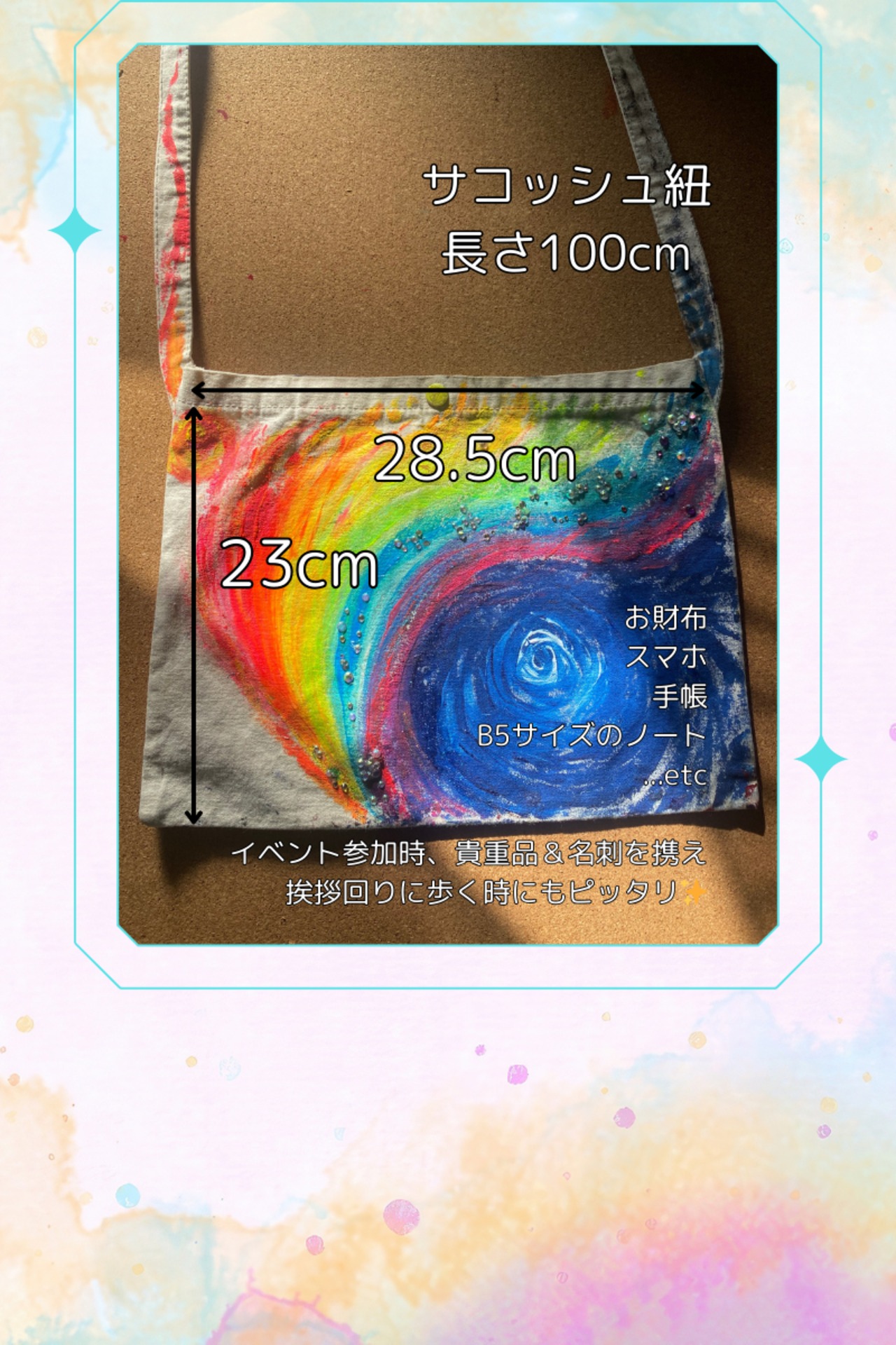 ・持つだけで気分が上がる、エネルギーと光のアートサコッシュです